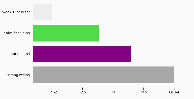 OpenAI nutze ein GPT-2 Modell als schwacher Supervisor für die Feinabstimmung eines stärkeren GPT-4 Modells und teste verschiedene Ansätze (inklusive, dass das stärkere Modell widersprechen kann), um die Fähigkeit von GPT-4 zu erzielen.